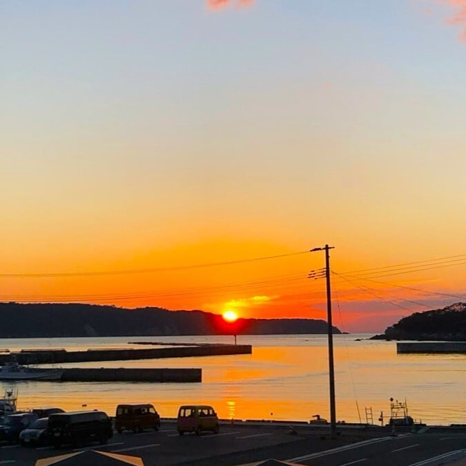 光に透けるグラデーションカラーは鮎川港の四季折々の海の色から着想を受けています。