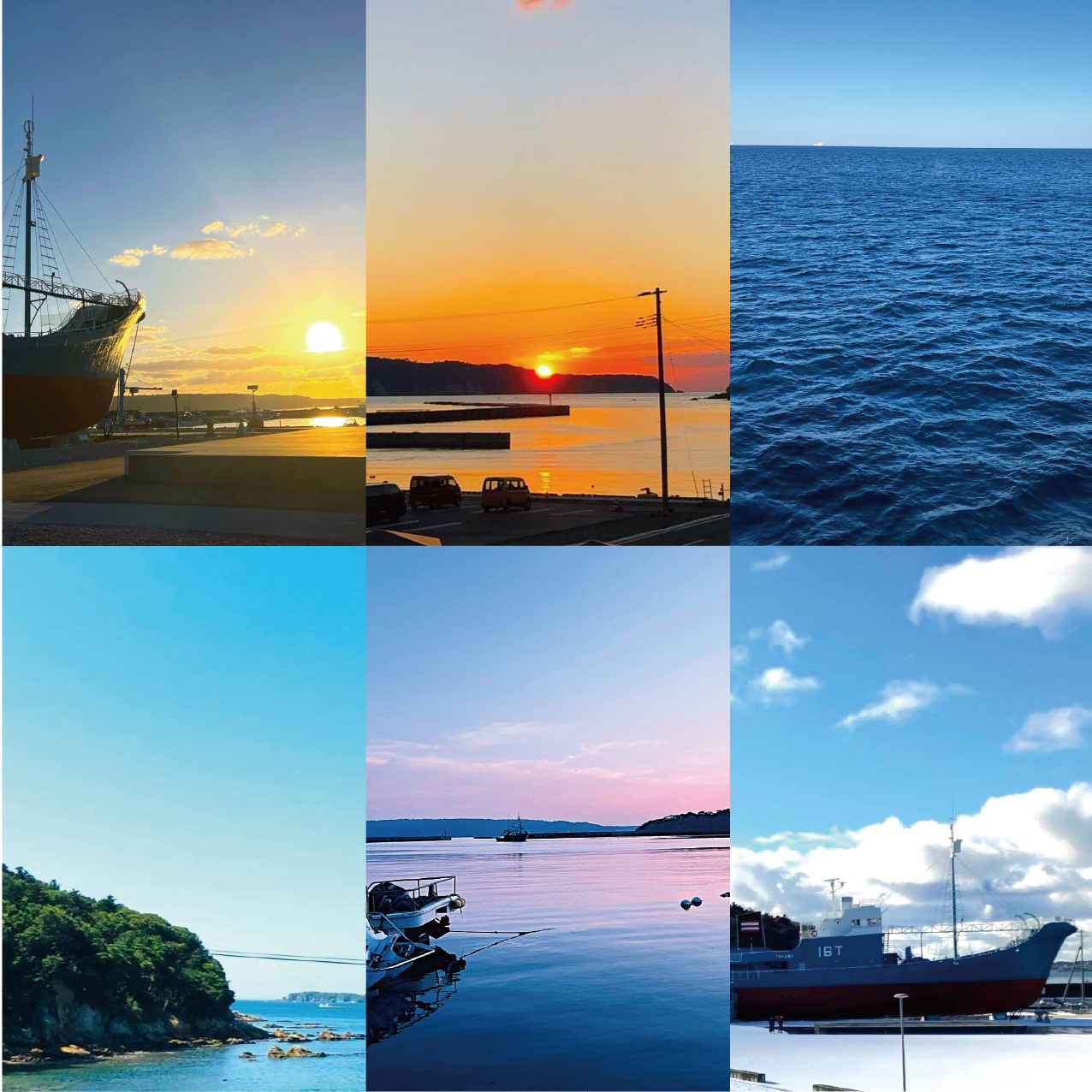 光に透けるグラデーションカラーは鮎川港の四季折々の海の色から着想を受けています。